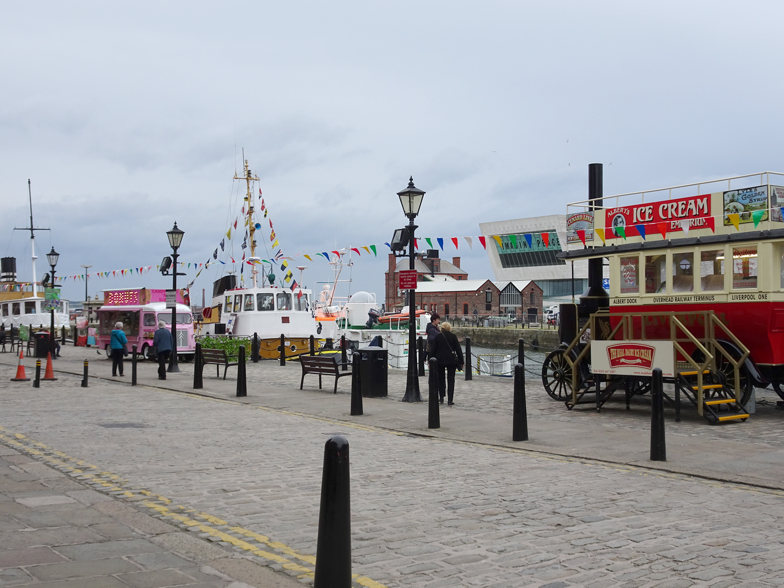 La navette nous emmenant à l'aéroport étant prévue pour 16 heures, il ne nous restait ensuite plus énormément de temps devant nous pour flâner. Nous avons quand même eu la chance de traverser le très vert et apaisant Saint John's Garden caché derrière le Saint George's Hall (immense bâtiment de style néo-classique renfermant des salles de spectacle et un tribunal) et de contempler ses magnifiques statues mémorielles avant de retourner une dernière fois sur les docks, incontestablement notre endroit préféré de la ville, sous un ciel de plus en plus menaçant.